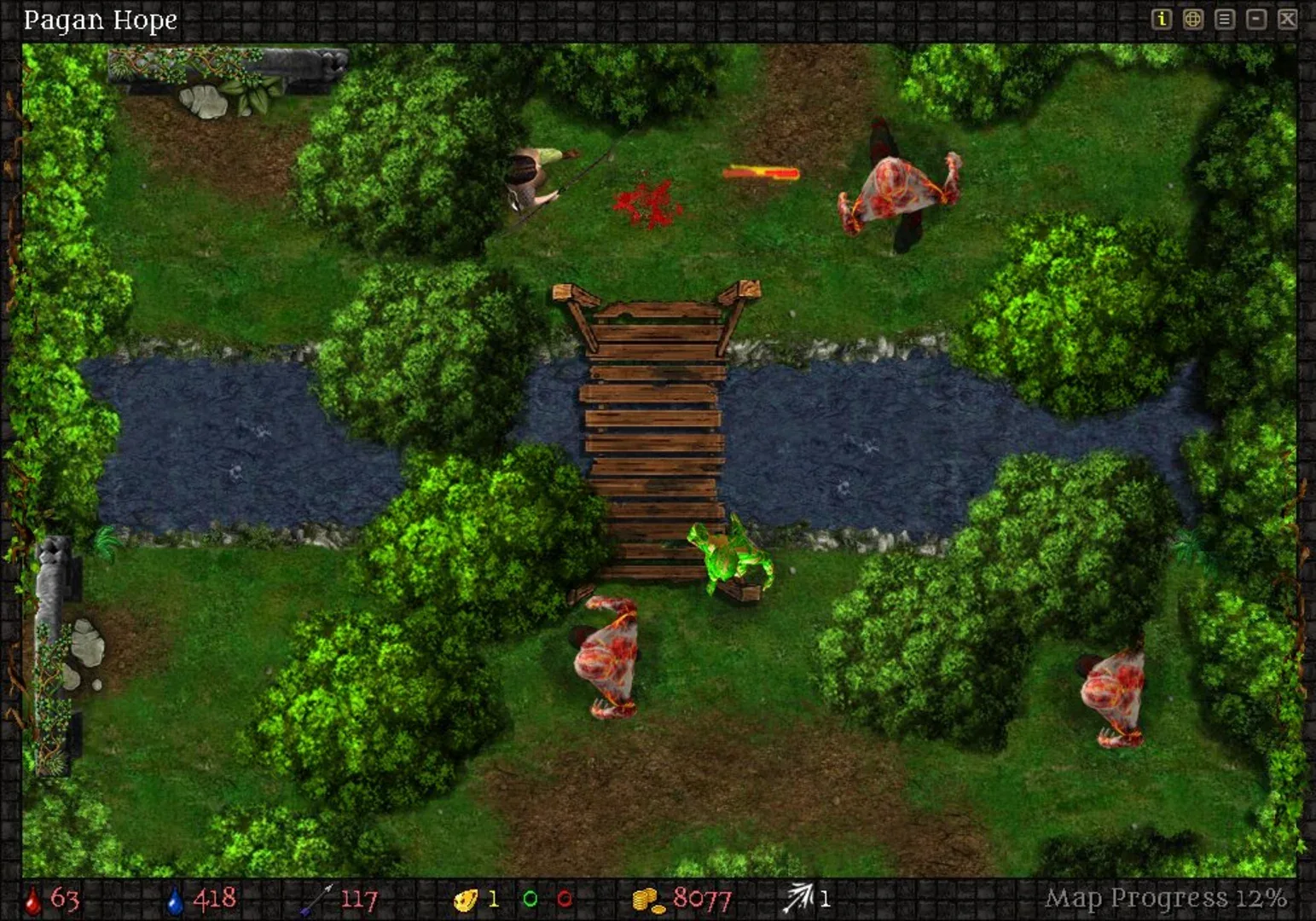 Pagan Hope is a PC/Windows hybrid rpg between roguelike and hack and slash gameplay types. It can be played straight-through as most of the maps are connected with constant paths, but there are also maps where the feeling of randomizing will be present. The plot: A great wizard summons a portal that connects the humans` realm with the unknown realm of Ja`han. A fierce demon, ruler over Ja`han that came through the portal, takes the sorcerer`s body and starts a quest to conquer the humans` souls. A young sorcerer is sent to retrieve some magical tablets that can block the portal.