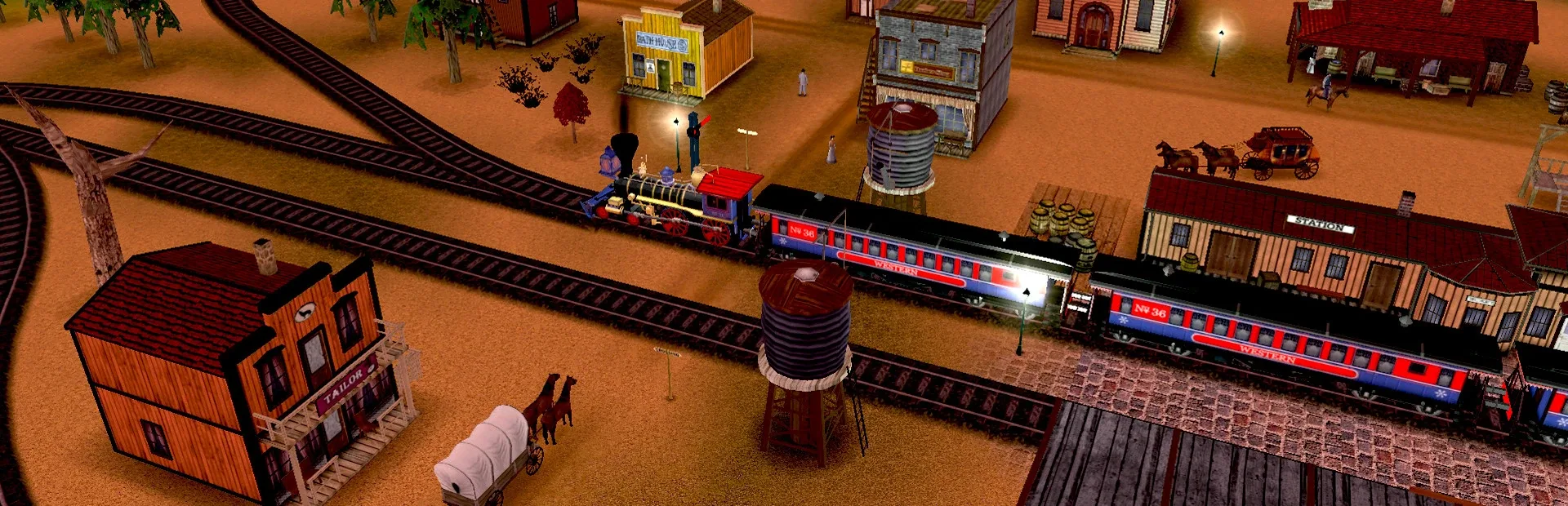 Fully functional model railway building game in Wild West style. Create and paint the landscape, place the tracks, steam engines and wagons. Start the trains and create control sequences to direct them to the right tracks.
