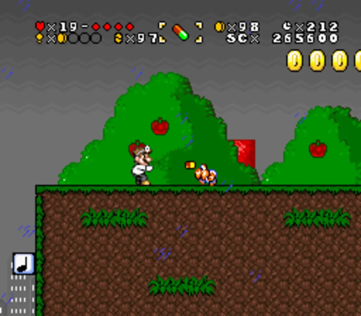 A Super Mario World hack inspired by Dr. Mario aesthetics and themes.
