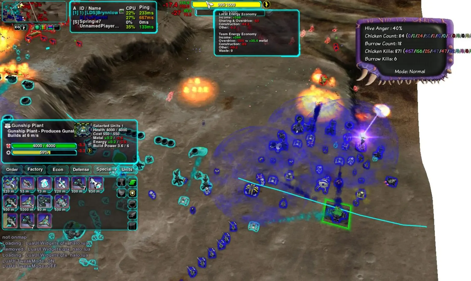 Zero-K (ZK; formerly known as Complete Annihilation and CA) is a free multi-platform open source real-time strategy computer game. Initially based on content from Total Annihilation on the open source Spring Engine, it was forked and all proprietary content replaced, and evolved into a completely new game with unique features. Among the games powered by the Spring game engine, Zero-K is particularly notable for its extensive use of Lua scripting for interface and gameplay changes/enhancements, as well as unique RTS concepts such as a flat technology tree.