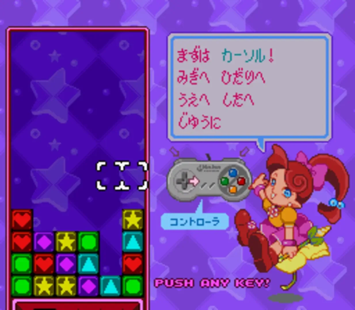 Panel de Pon Event '98 is a modified special event version of Panel de Pon that was broadcast between December 28, 1997 and January 31, 1998 for the Satellaview Super Famicom peripheral. This game only has 1P Stage Clear mode (five stages only, which only skips Lip's Stage) and the 2P Vs. mode with no background characters.