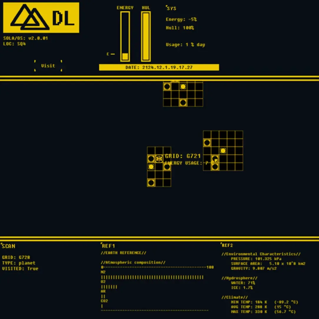 An exploration in 1980s future aesthetics, hard work, and non-linear storytelling. Made in two months as part of the curated Antholojam with Mint. Find a new home for humanity by studying atmospheric charts and exploring new worlds.