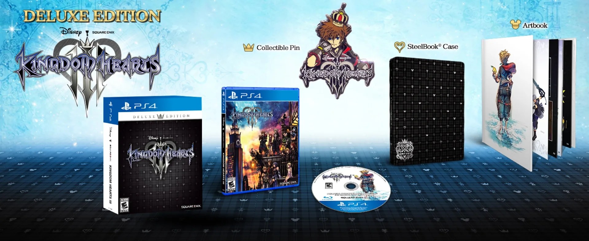 The Deluxe Edition includes: - The Game - Deluxe Edition package - Collectible Pin - Steelbook Case - Artbook