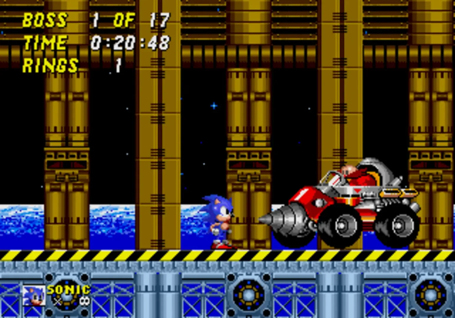 Robotnik's Revenge is a hack of Sonic the Hedgehog 2 by ColinC10. It is a "boss rush" hack, in which all seventeen bosses from Sonic the Hedgehog and Sonic the Hedgehog 2 are fought in a somewhat arbitrary order over the course of a single level. The game takes place in Death Egg Zone from Sonic 2, and is meant to imply that there is more to the ship than there is in the original game. Time spent completing the boss run is kept and the total time is given at the end of the course, along with a ranking. In Time Attack mode there are infinite lives and rings that can be found in-between battles. In survival mode, there are only 3 lives and no rings.