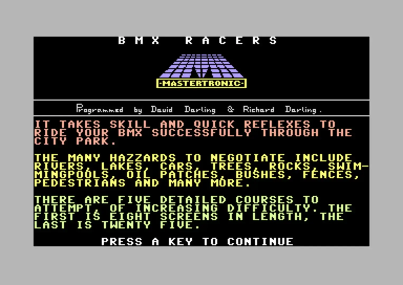 Mastertronic BMX Racing game for the Commodore 64 and 16 computers