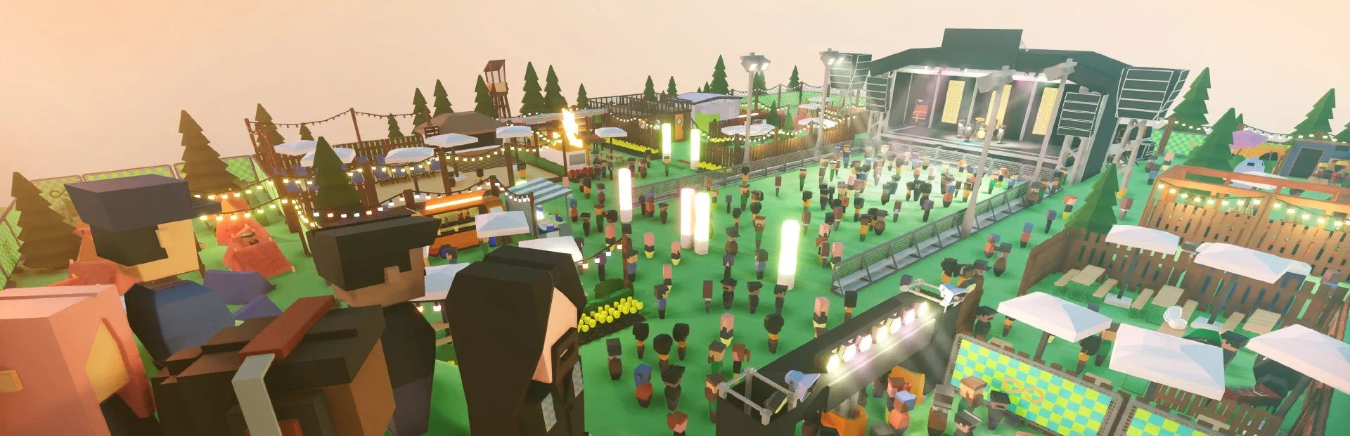 Create and manage your own music festival empire. Book bands, setup stages, organise your line-up, layout tents and portaloos, roll out the food trucks and build your festival’s reputation to appease sponsors and earn big bucks. In Festival Tycoon, booking bands, setting up stages, organizing the line-ups, layout tents and portaloos is some of the many mechanics one will need to master to build the festival of their dreams. Players will be able to create, design, and manage their own music festival empire, starting from humble beginnings in tiny fields to a Coachella-sized event. A fusion of builder, management and RTS, Festival Tycoon is all about hosting the wildest festival the world has ever seen in adorable, colourful voxels. Features: 🎪 Design the optimal festival layout: Place tents, VIP bungalows, glamorous stages, portaloos, festival decorations and more! 🎸Book talent and arrange a stellar line-up: Put your bargaining skills and musical taste to the test by hiring a range of bands across the likes of folk, rock and techno. 🎫 Attract sponsors and sell tickets: Appease sponsors like banks, record labels and drink companies for grants. 🤩 Keep the crowds happy: Be wary of your attendees' satisfaction, as unhappy punters are quick to take to social media and ruin your reputation!