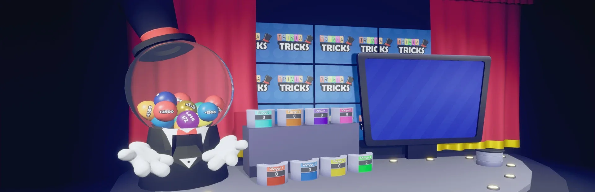 Trivia Tricks is a trivia party game played online and locally with up to 8 players!