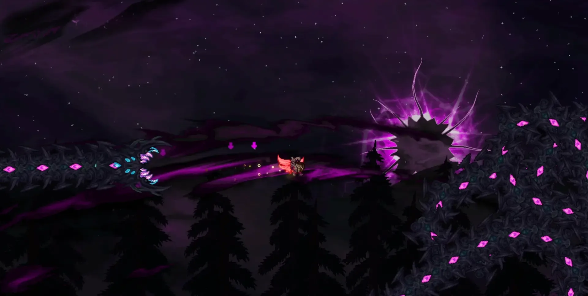 The Calamity Mod is a large content mod for Terraria which adds many hours of endgame content and dozens of enemies and bosses dispersed throughout the vanilla game's progression. The Calamity Mod also features several harder difficulty modes, five new biomes and new structures, a new class, more than thirty new songs, over fifty recipes for previously uncraftable vanilla items and other assorted changes to vanilla gameplay.