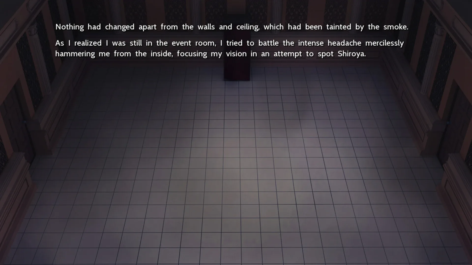A mystery thriller visual novel featuring line search and jump functions. During a gem exhibition in the rural town of Yushibana, smoke floods the building, activating emergency shutters that trap eight people inside. With no way out, they must find the truth behind their imprisonment and grapple with an increasingly complex series of unnatural events.