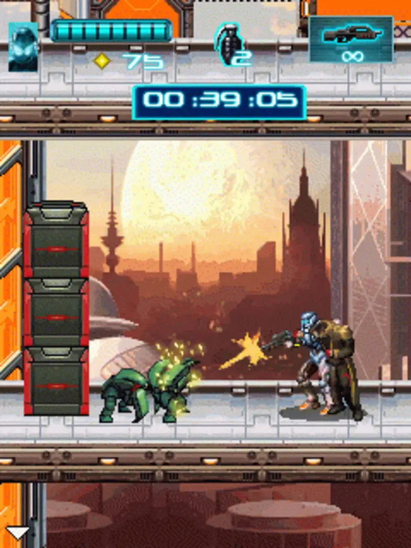 This version of N.O.V.A. is different from the 3D game, being a 2D sidescroller shooter. The player must fight against aliens, using different abilities to proceed in each stage.