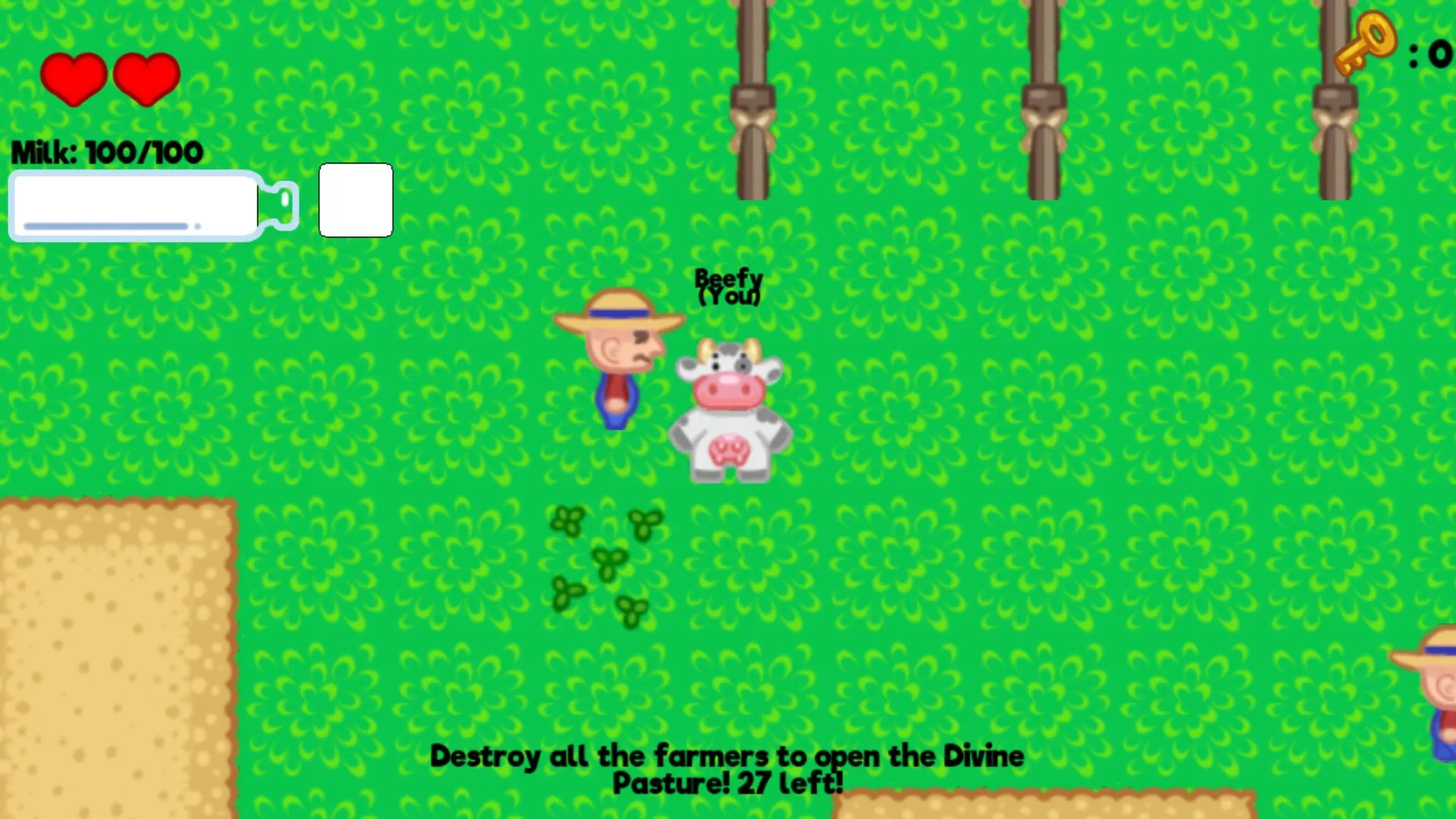 Farmageddon: A Cattle Royale is a series of cow puns masquerading as a new kind of roguelite. Try to claim the divine pasture while picking up items along the way to improve your build! But be careful: every player's run is recorded, and you'll be playing against the ghosts of every run attempted in the same day, including your own!