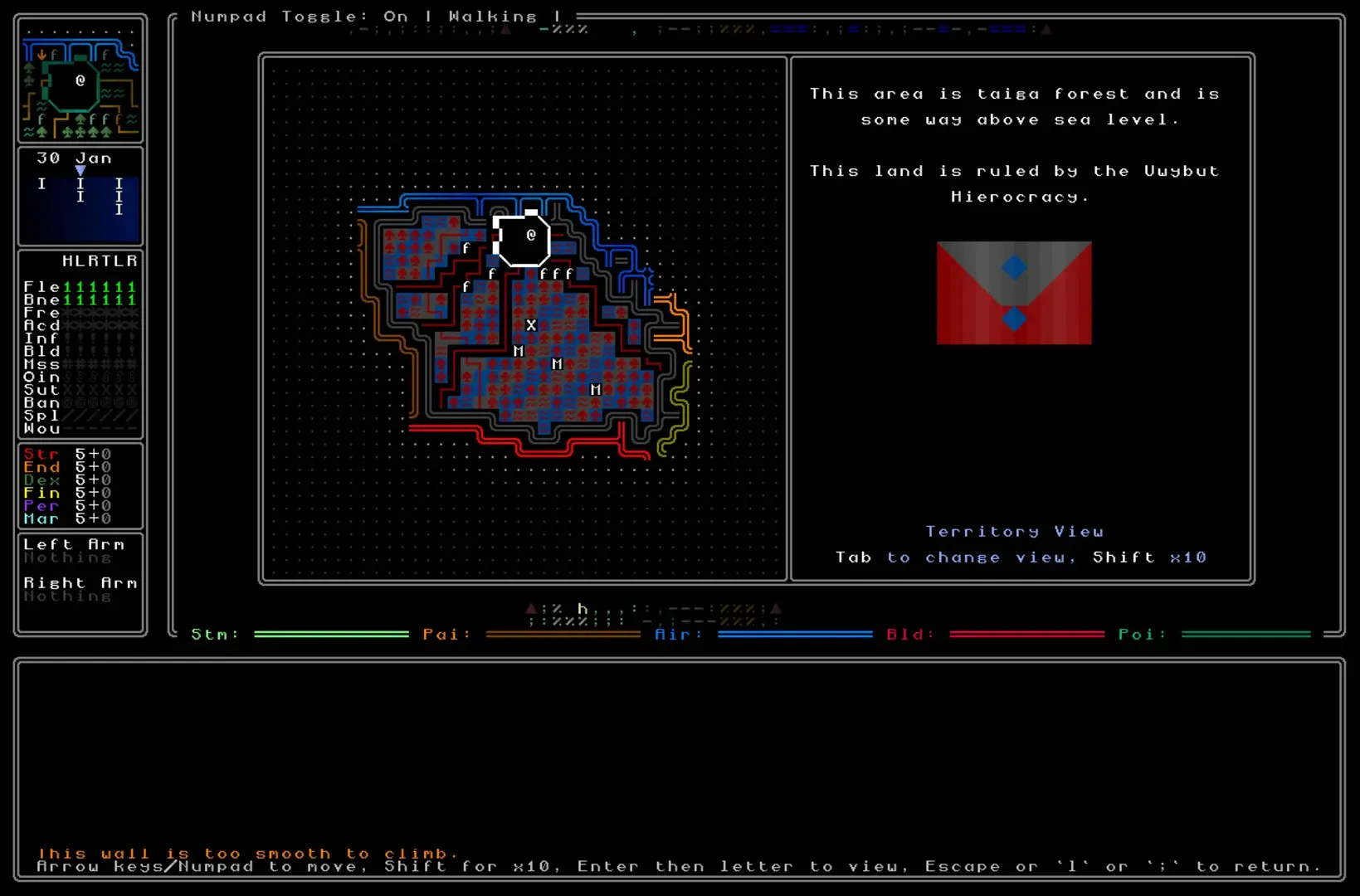 Ultima Ratio Regum ("the last argument of kings") is a game which aims to integrate thematic content on historiography, philosophical idealism and the rise of modernist grand narratives, with the deep, complex and challenging gameplay one expects from a "classic" roguelike (and, of course, an ANSI display and permadeath). Set approximately around the Scientific Revolution, the player is tasked with discovering a conspiracy via identifying procedurally-generated clues hidden throughout the world's cultures, religions and societies; the game features extensive procedural generation of everything from tombs and religious altars to (in the future) paintings and sculptures, any or all of which may contain the clues required in a given playthrough.