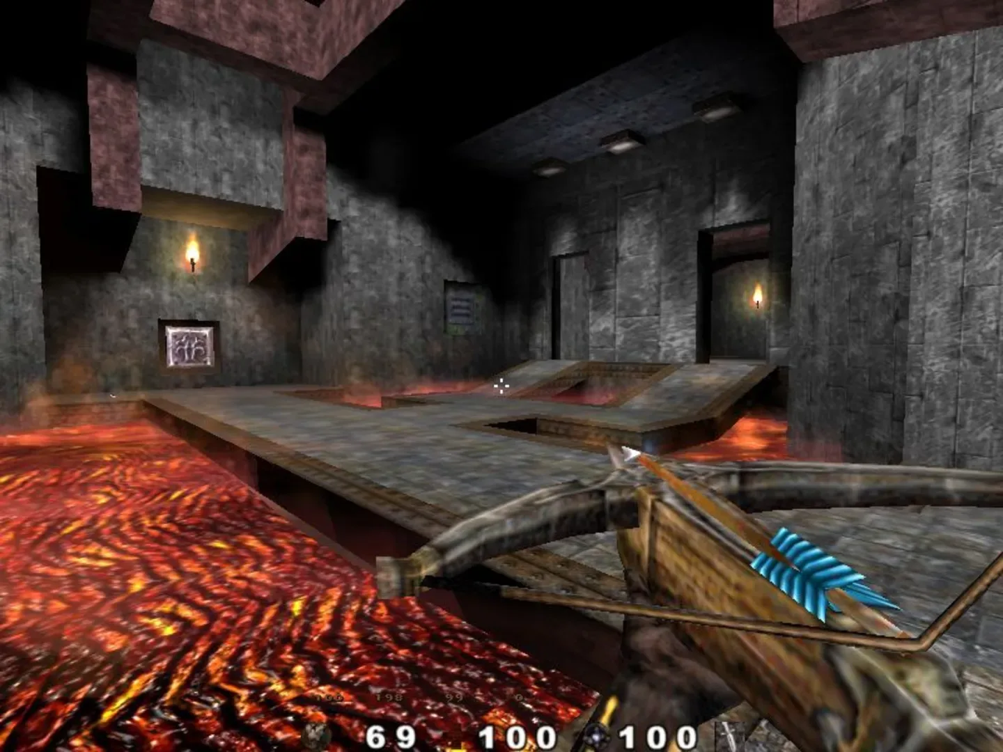 Eternal War: Shadows of Light is a Christian-themed first/third-person shooter running on a modified Quake engine. Eternal War expands upon the gameplay formula of Quake by introducing additional features and playing modes. Mike's journey spans 17 levels, which can be completed either in single-player mode or in co-op with other players. There is also another game mode called Flood, which involves fending off waves of demons and sealing the gates through which they come. This is primarily a multiplayer mode, but it can also be played with friendly bots. The game's setting has strong medieval fantasy motives. The eight weapons at the player's disposal either come from a medieval arsenal (dagger, crossbow, sword) or are various holy spells like Smite and Trinity Blast which are powered by manna. Essentially, most weapons function similarly to those of Quake. However, each also has an alternate firing mode that can be toggled at any time. Alternate attacks deal more damage at the cost of increased ammo consumption. The monsters also have medieval fantasy designs, sometimes reminiscent of Heretic or Hexen. These include zombies, levitating necromancers and various humanoid fighters in medieval attire. Many of the enemies have special abilities and alternate attacks, making them even more dangerous. One special feature unique to Eternal War is the player's ability to pray, which allows Mike to regain full health. It is not possible to fight while praying, but the player is surrounded by an aura that will banish any demons that might try to attack him.