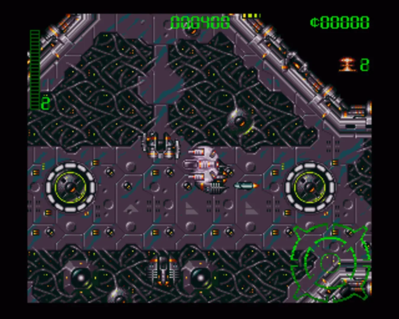 12 Different stages with hundreds of intelligent hybrid aliens. Featuring multi-directional scrolling with fully animating backgrounds.