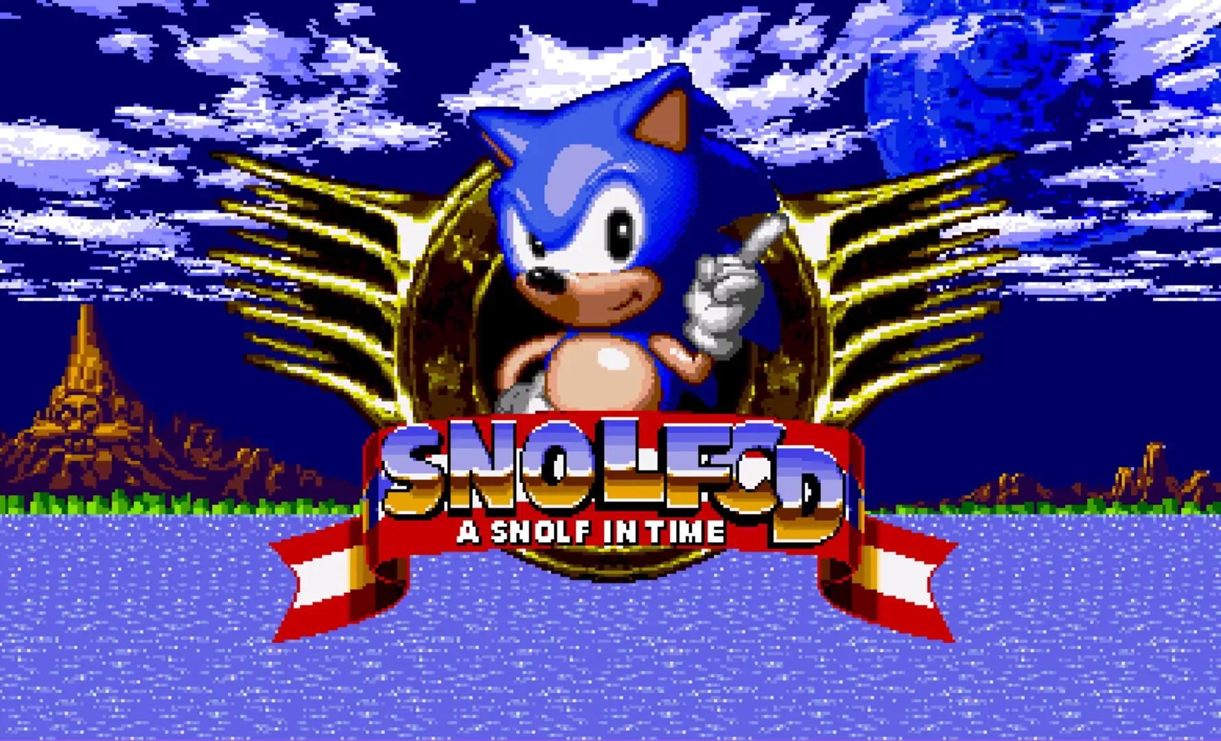 As with other SNOLF games, this hack replaces Sonic's ability to move with a golf-game mechanic, similar to the kind of thing found in games like Kirby's Dream Course. Sonic remains rolled up into a ball under most conditions, and can only be launched when he has come to a stop. The Rings counter instead counts how many shots you have taken, allowing players to compete to get the lowest score! This time, Snolf has been hurled into a world where the time-space continuum is a little less... rigid, and his dark powers have manifested themselves in an unusual way...