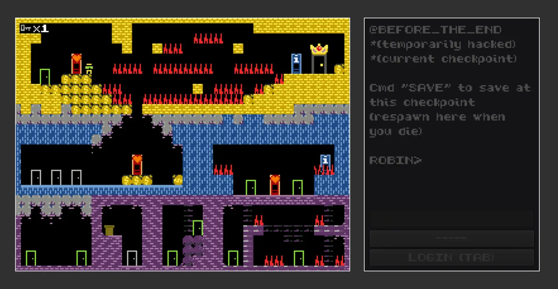 Cruel World is a mingleplayer masocore platformer set in a game world that degrades based on player choice. It is only available on April 1, 2021.
