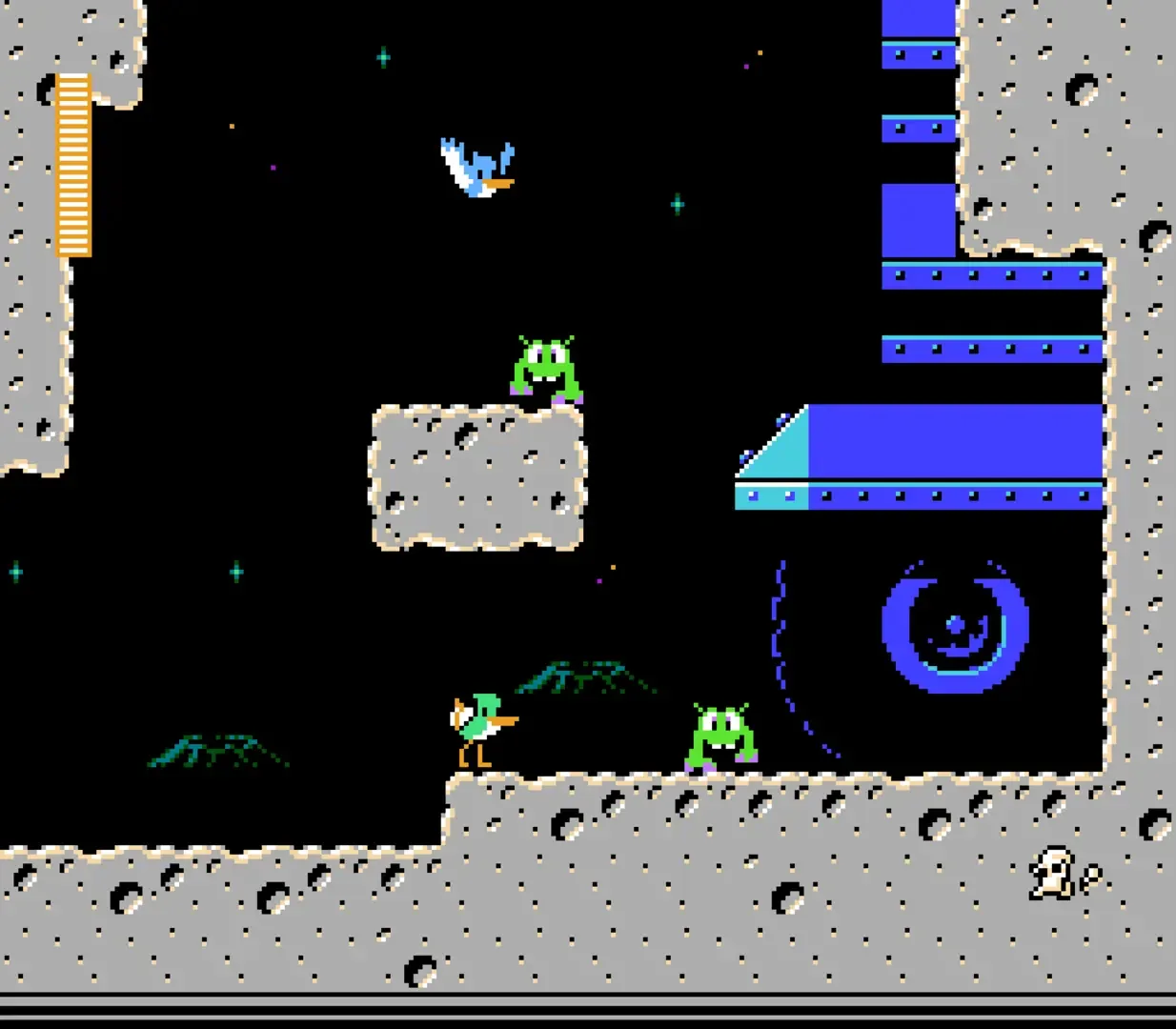 Spacegulls is cute platformer featuring birds in space developed for the NES. It is best described as a combination of Joust and Mega Man. 1-2 players The first version of Spacegulls was made in 1 week and won 1st place in the NESdev Compo 2020/21.