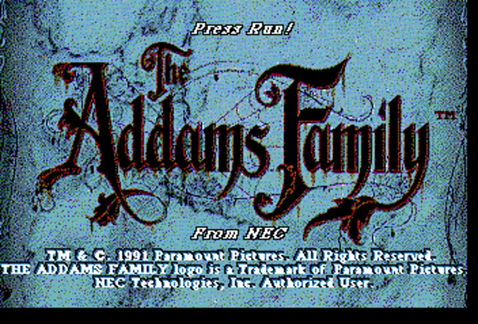 Based on the Addams Family movie, the TurboGrafx-16 CD version is quite different from the other Addams Family variants. The player is cast in the role of Tully Alford, the crooked lawyer of the Addams family. He finds out that somewhere in the family mansion, a great treasure is stored in a vault. He decides to venture into the mansion and retrieve the treasure. Naturally, this is going to be anything but easy, as the insane Addams family members and a legion of ghosts and monsters are there to make sure the lawyer fails... Like most other Addams Family incarnations, this is a side-scrolling action game. Tully Alford's only weapon is an umbrella that fires energy shots at enemies. Tully can also jump and duck to avoid enemy blows. The game world consists of a "hub" area, the hall of Addams Family mansion, and many rooms, most of which are locked in the beginning of the game. The gameplay consists mainly of exploring the accessible rooms and collecting keys that are needed to open other doors in the process. Some of the rooms contain treasure and power-ups, while others are infested by monsters or require the player to defeat a boss enemy in order to advance.