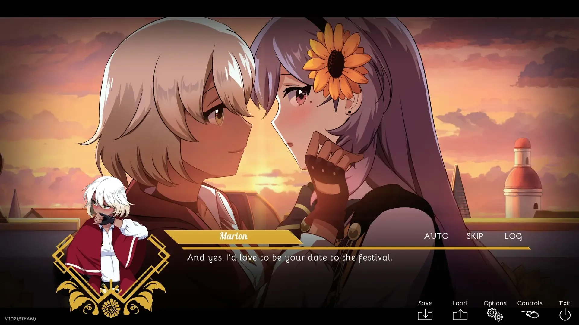 Perfect Gold: The Alchemy of Happiness is a short, coming-of-age yuri visual novel about two former friends who escape detention in order to celebrate the Sunflower Festival. Set in the magical city of Castlecoast, readers get to know Audrey Clary, an alchemy student and heiress who secretly dreams of a different life, and Marion LaRue, a rebellious elemental magic student in search of someone she once loved.