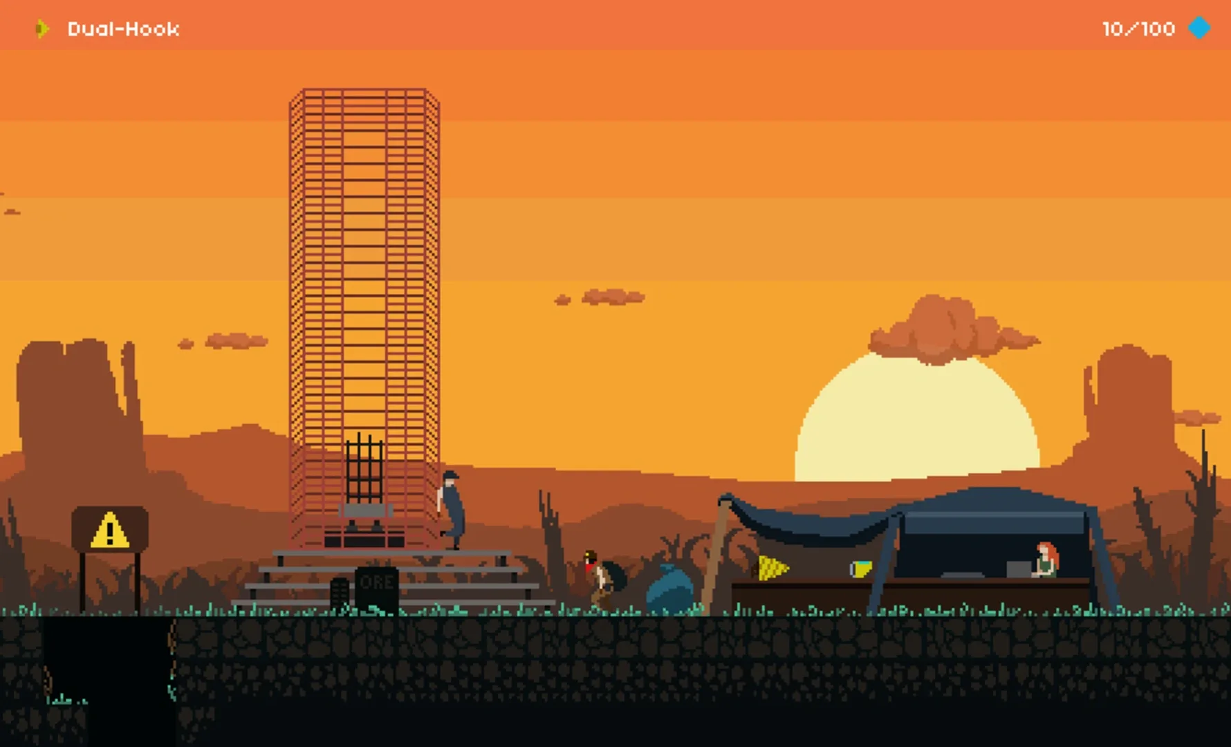 A metroidvania platformer with several bizarre super-unconventional tools. Play as a member of a group of miners who were left behind by their company since they were having a party at the depths of the excavation site at the moment of departure. When they woke up from the party, no one was there. If they want to see their beloved ones again, they'll need to build an improvised spaceship to reach the escape velocity that will take them outside planet Urult.
