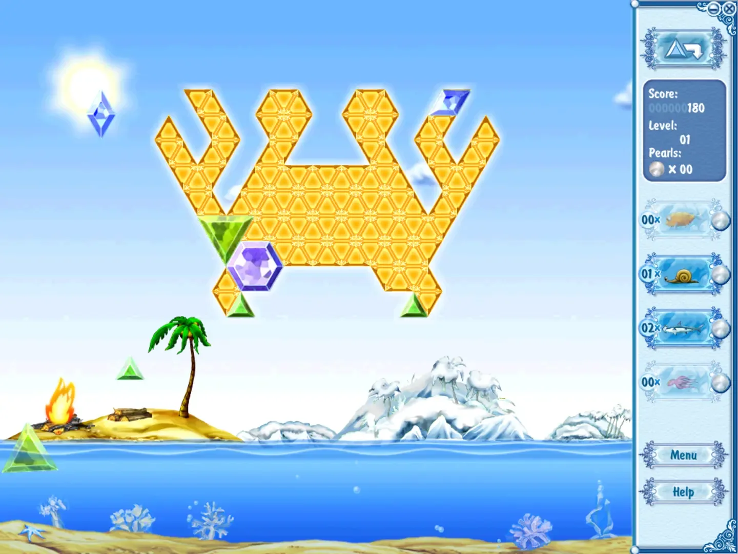 Crystal Ice Quest is a puzzle game in which you fill a shape with blocks of different shapes that are falling.