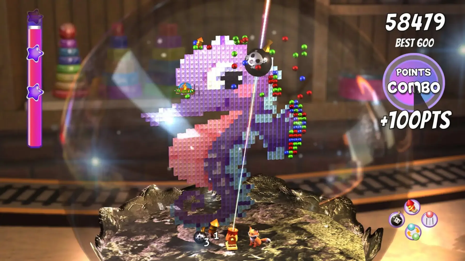 Discover these nostalgic and mythical characters with the classic bubble game. By combining colours, you will be able to make "Combos" and get various special "PowerUps", such as the targeted rocket, the destroyer bomb and the laser shooter, all of which will help you reach the top of the ranking. Beautiful and nostalgic graphics set in a charming toy store from long ago, which will take you back to your most retro childhood. Relaxing and immersive game where you'll be trapped until you discover which unusual character is hiding behind each snowball.