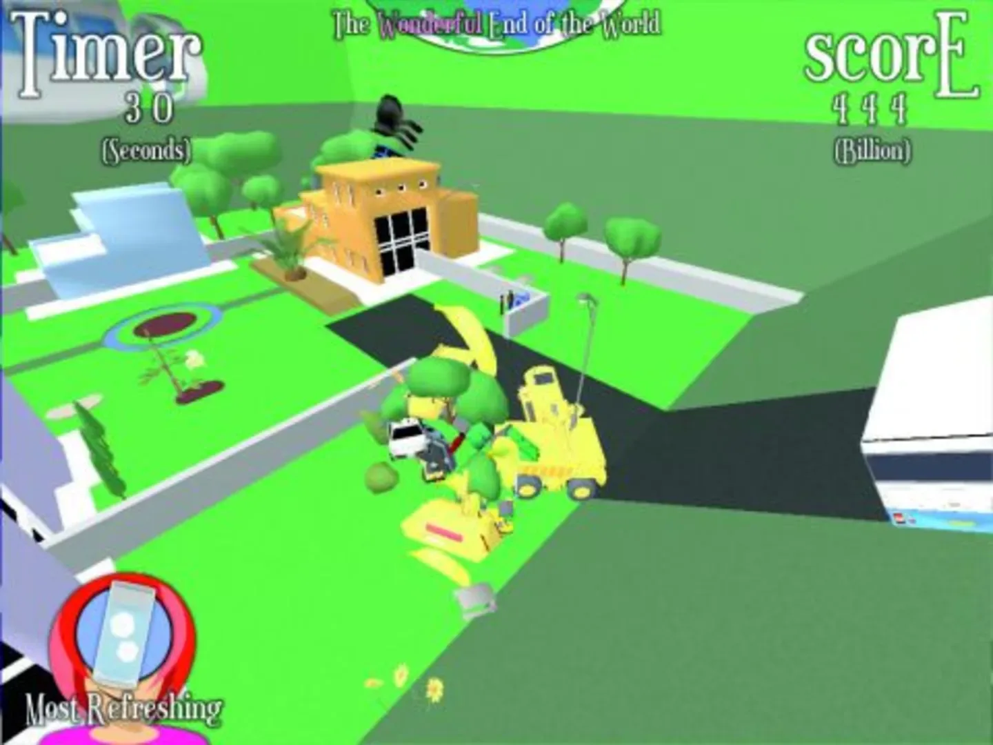 You can't save the whole world. It's going to be eaten by a mythological demon with the head of a fish. But as a puppet that absorbs all it touches, you can try to rescue as much of Earth's greatness as you can before the end arrives. In the beginning, you roam the Earth, capable of absorbing only the tiniest of objects. A glass marble you collect becomes your head, and a pair of jellybeans becomes your hands. Small creatures overwhelm you, with rats kicking you around and golden retrievers threatening to stomp you to pieces. But with every object you collect, your puppet self grows larger. Eventually, you'll become a towering behemoth with fire engines for arms and the ability to absorb entire buildings. The Wonderful End of the World takes you through 12 unique locations, with over a thousand treasures to gather before the end comes. Steal some sweets from the candy store, where gummi fish swim in a blueberry river; visit a surrealist library to find that the words have literally leapt out of their books; and explore the Megalopolis, where you'll watch a lively end-of-the-world parade and then gobble it up before making your way to grab the tallest skyscraper ever built.