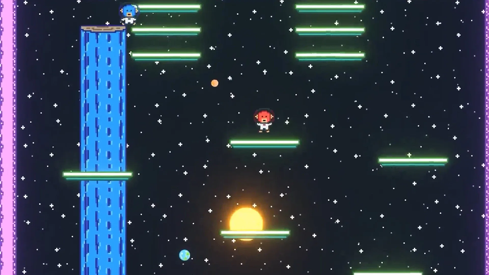 An online or local multiplayer space monkey racing platformer. Fight your way to the top to grab the banana with tons of different ways to play.