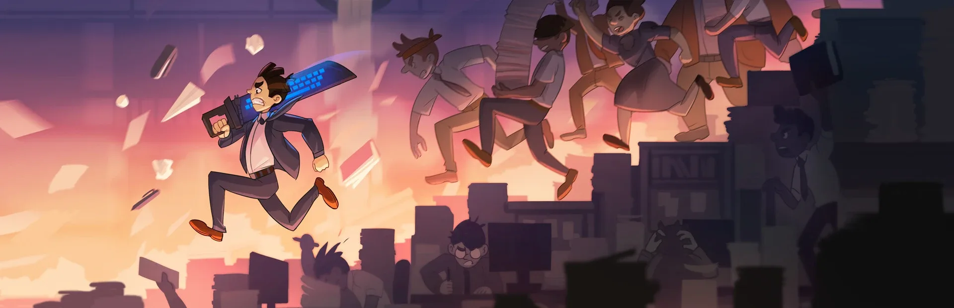 A 2D action-adventure where you can hit your crazy co-workers with a keyboard and shoot your evil bosses with emails. Survive the struggles of working life and fulfill your lifelong quest to be CEO!