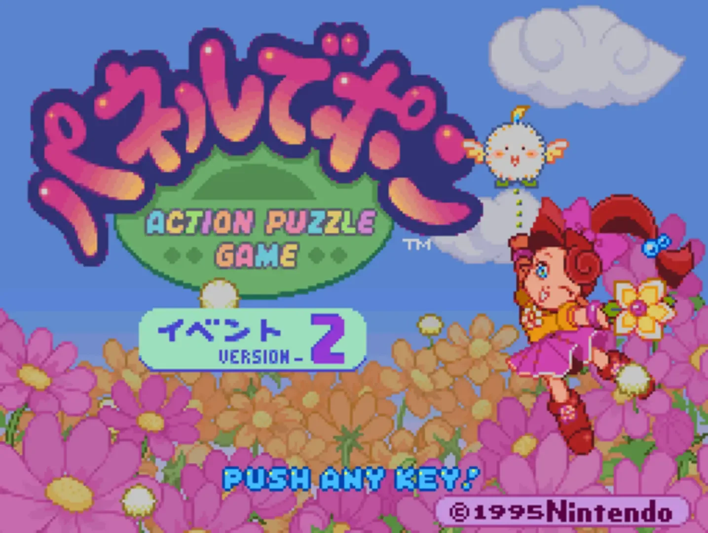 Panel de Pon: Event Version 2 was an event released on the Super Famicom's Satellaview service. This allows you to play the Endless mode, the Stage Clear mode and an Event 2 mode in which you compete against Sherbet, Seren and Cordelia within a 5 minute time limit.
