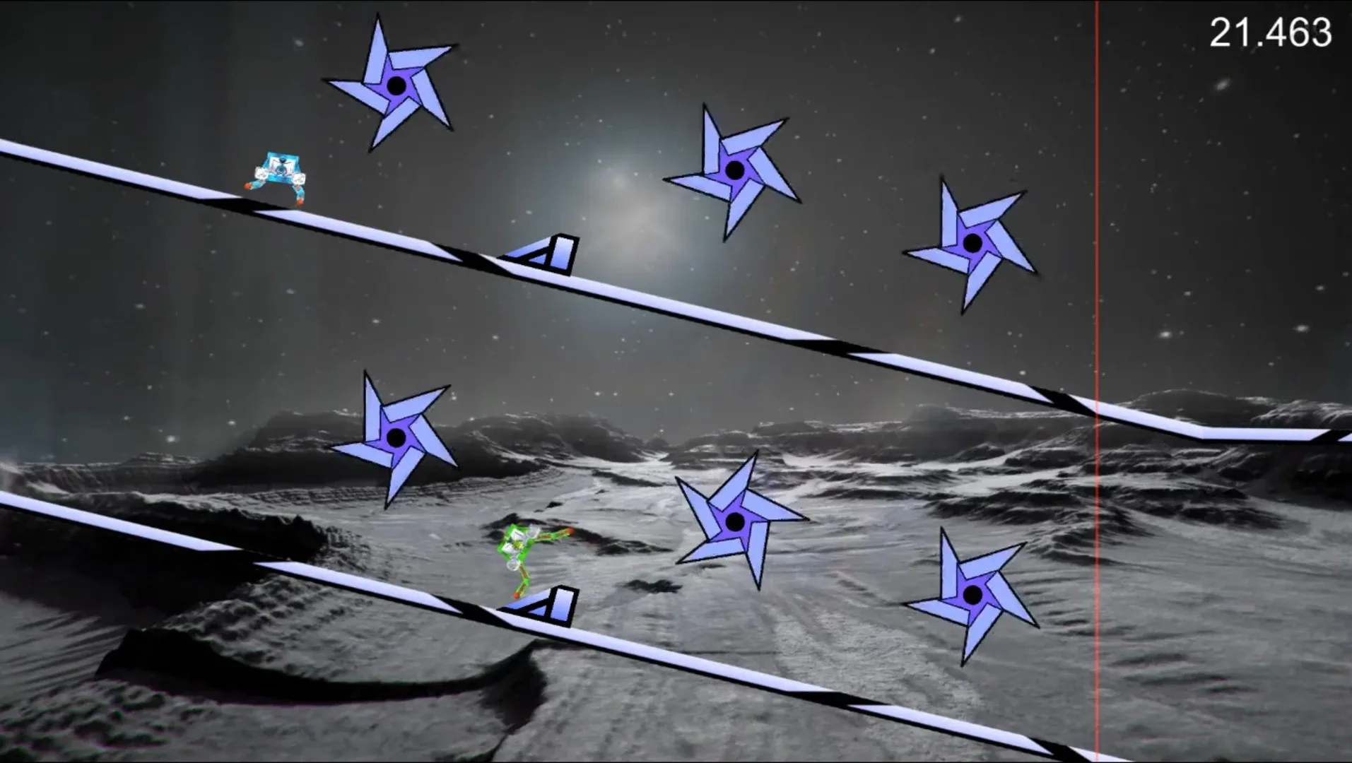 Cyber Lemur is a challenging 2D couch-multiplayer game with a variety of game modes including race, jump, and battle. The controls are difficult to master, but can be made easier by having two players control the same character. The game is great for parties, or those who love a challenge.