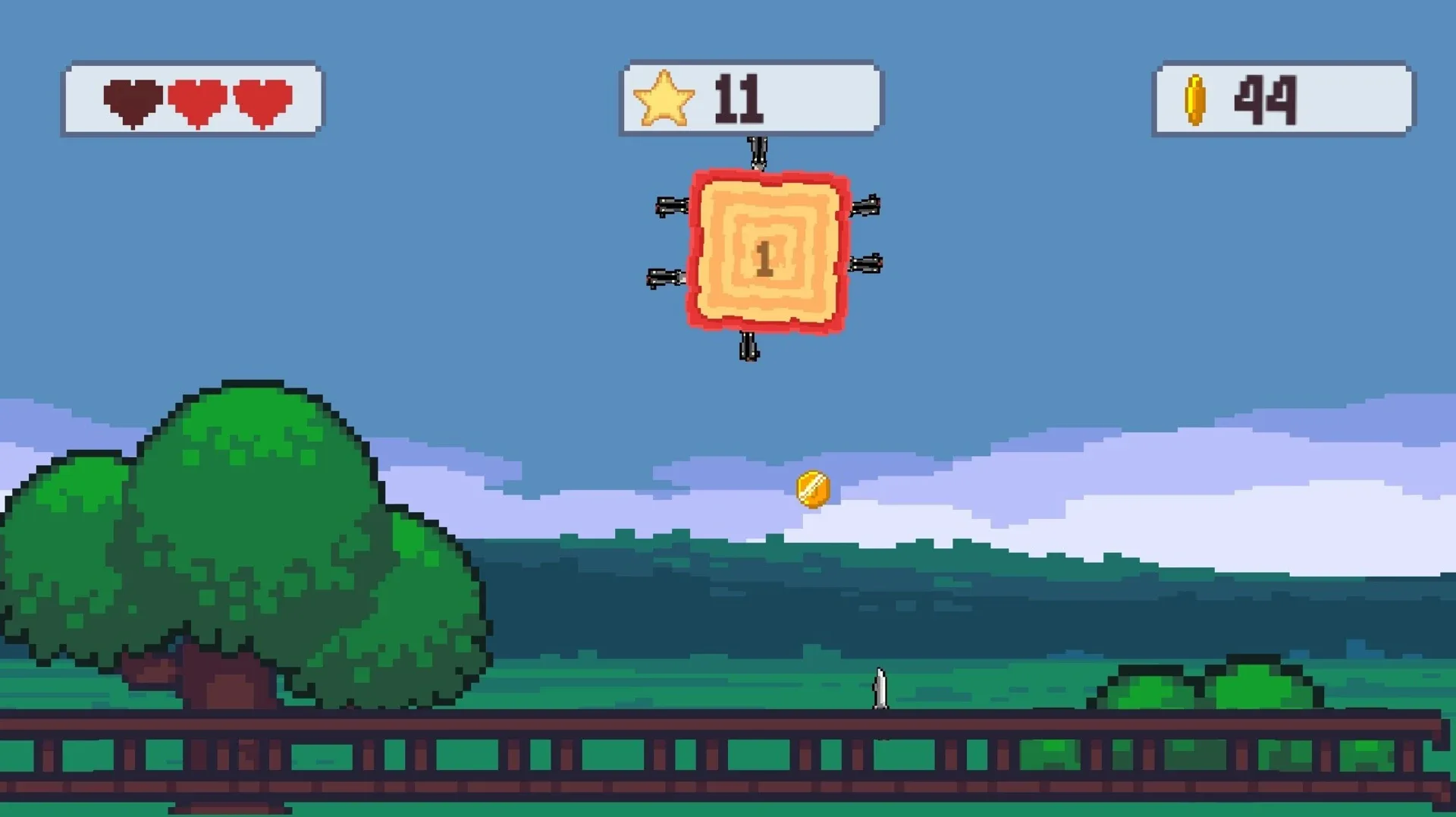 Throw Knives is a new casual and addictive retro-style game that will help pass the time at lunch, at work, during insomnia. Its essence is to compete in throwing knives at a tree. Sounds simple, but it's actually not that easy. Try to hit the target without hitting other knives.