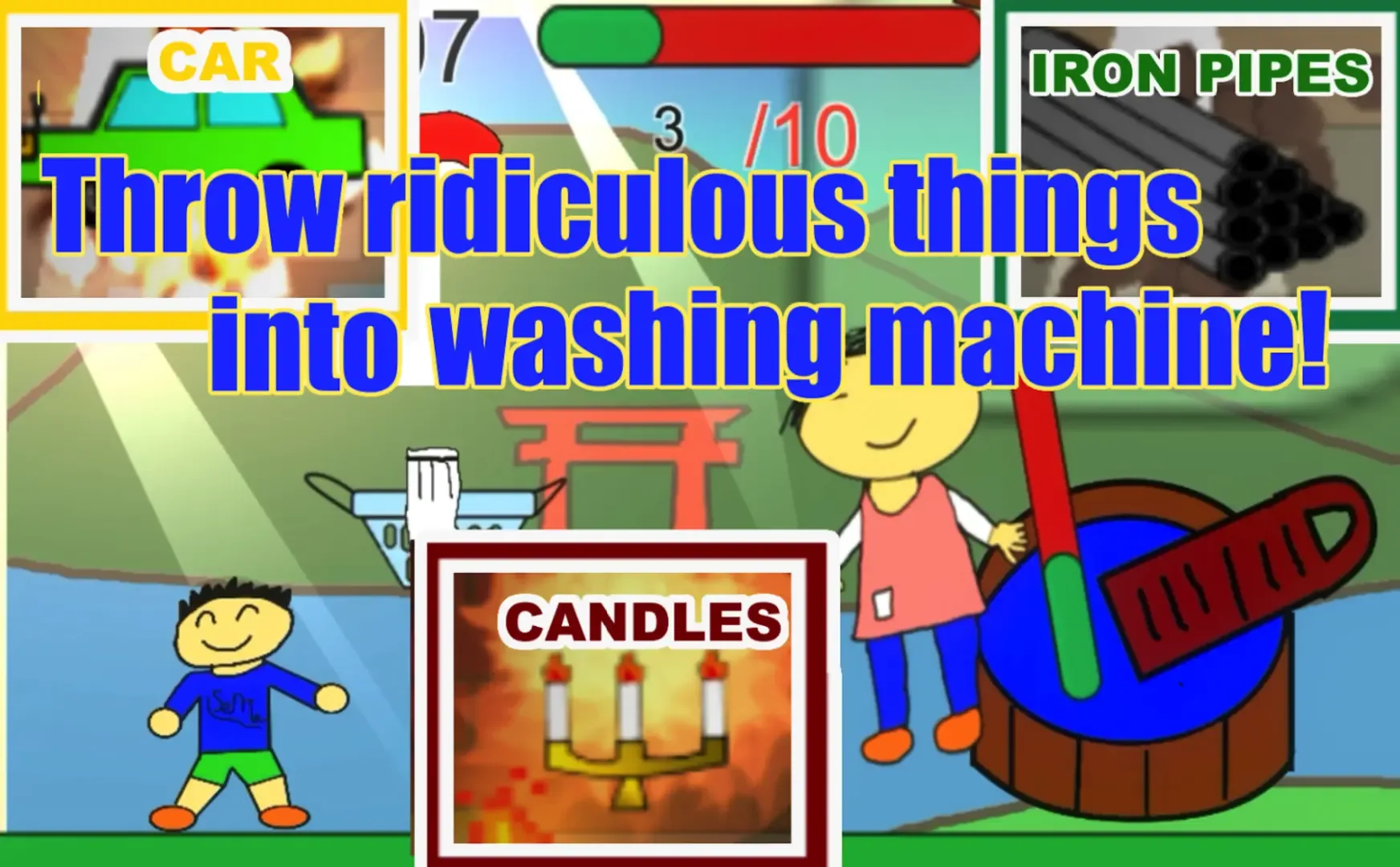 Throw ridiculous things into the washer! A crazy laundry game that makes you relax!