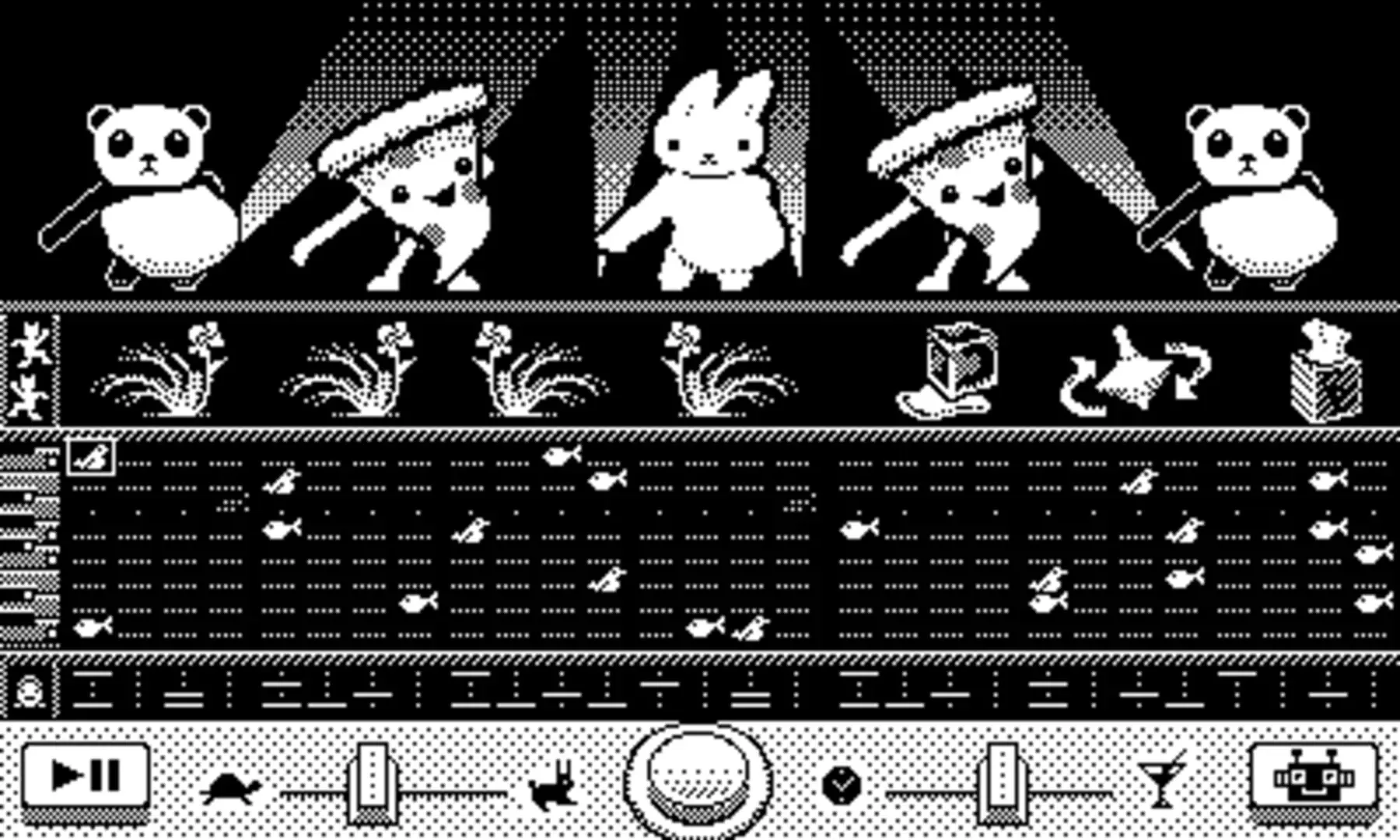 A pizza, a bunny, a cactus, and a panda wander into the woods. Nobody suspects they can dance, but secretly they share dreams of spreading their fuzzy, spikey, cheesy joy far beyond the woods and into the great wide world. But there's a problem: they’re missing music. That's where you come in. Set the beats for their boogie, the tones for their twerk, the swing for their steps.