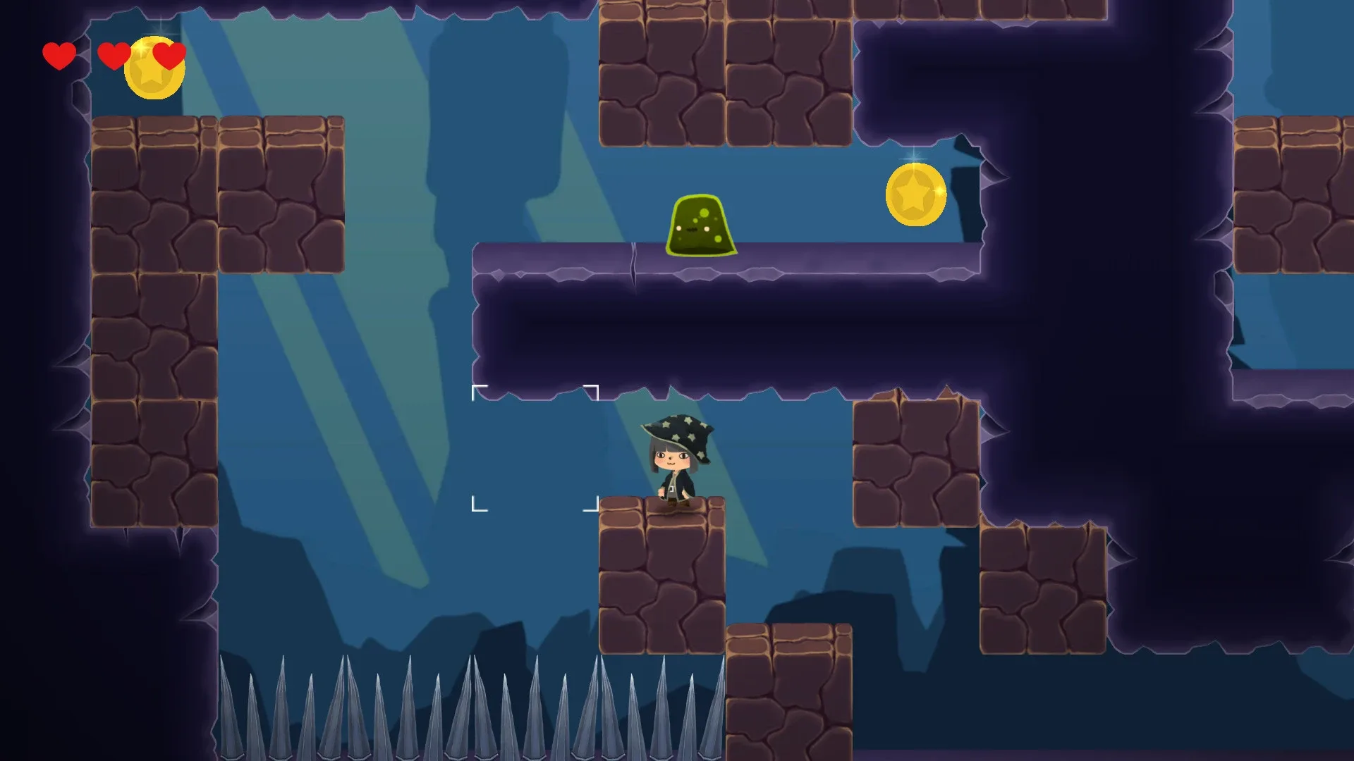 Witty witch is a 2D puzzle platformer with handpainted graphics. Suitable for a wide audience of all ages and preferences. 100 levels, filled with a variety of monsters will force you to show ingenuity and dexterity. And a funny story will give motivation to reach the end.