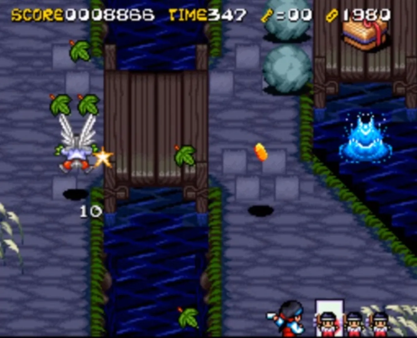 Princess Luna was visiting from the moon for the joyous harvest day celebration. All the villagers were gathered around the festival square, eating, dancing and having a wonderful time. Meanwhile, far away on the Demon Island, Dynagon was plotting his revenge. After the beautiful Proncess Luna refused to marry him, Dynagon went into a frenzy. Dynagon then ordered Impy, his most faithful servant, to go kidnap the princess from the harvest festival, in order to force her to get married to him. "Help! Help!" cried the Princess, but it was too late. In a flash, She disappeared. Pocky stood in amazement as she watched the Princess vanish. As Pocky and her partner, you are about to embark on a fantastic and dangerous adventure to rescue the Princess. You will need to use your wits and bravery to reach the end of your journey. Are you up to the challenge? - Seven different partners to choose from. - Outstanding graphics and music. - Plenty of unique and playful moves. - Action/Adventure game for the entire family.