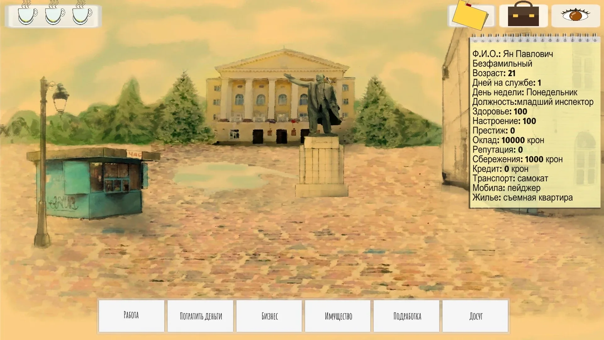 "Revizor" is a visual novel, a simulator of an office employee. You can flirt with colleagues at work, go on dates, earn and spend money, do business, meet friends, conduct audits, get sick and heal, listen to the radio with exclusive tracks, make decisions, run errands, and much more!