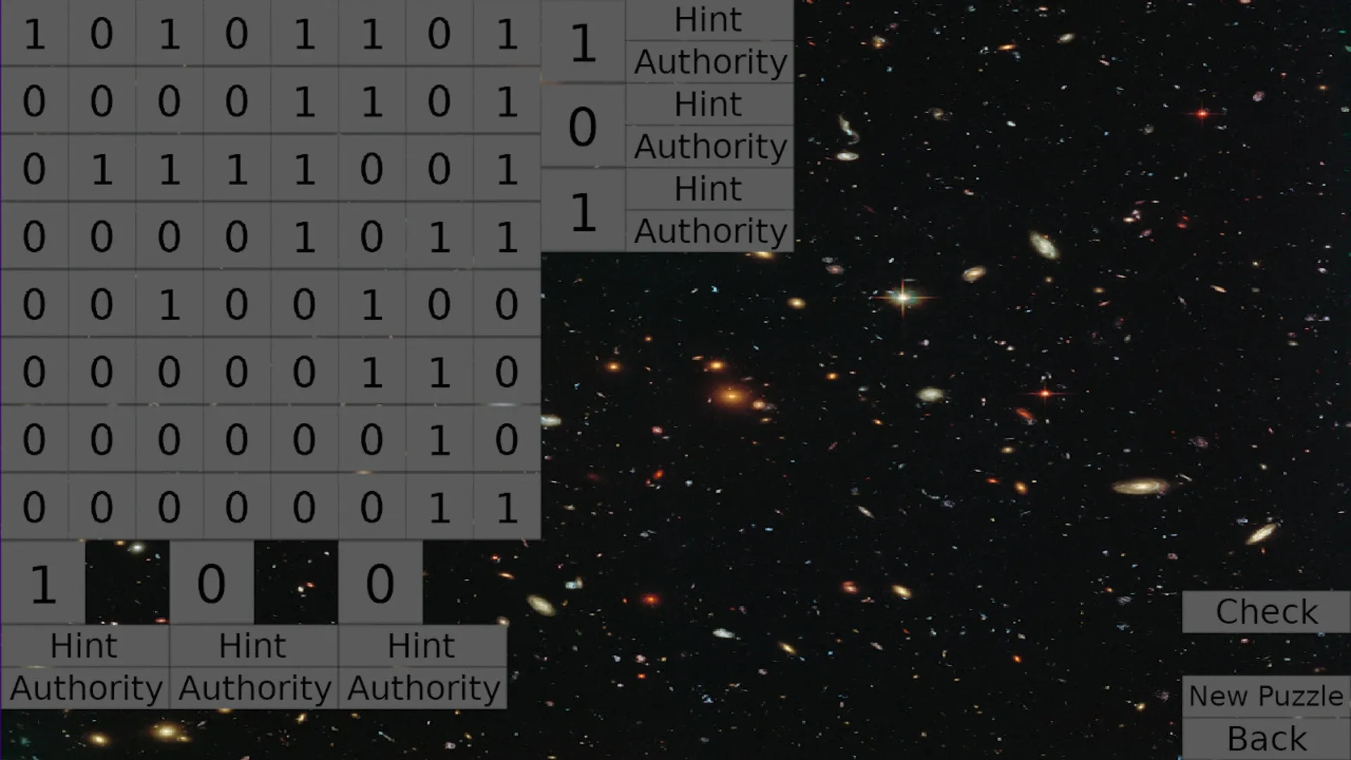 A puzzle game based on parity and hamming codes.