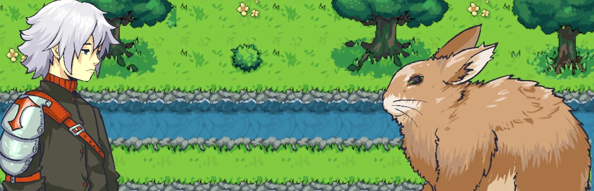 A Conversation With Mister Rabbit is a very short, linear visual novel with a dark and bloody twist. The story follows an aspiring knight who seeks wisdom from a big and fluffy rabbit.