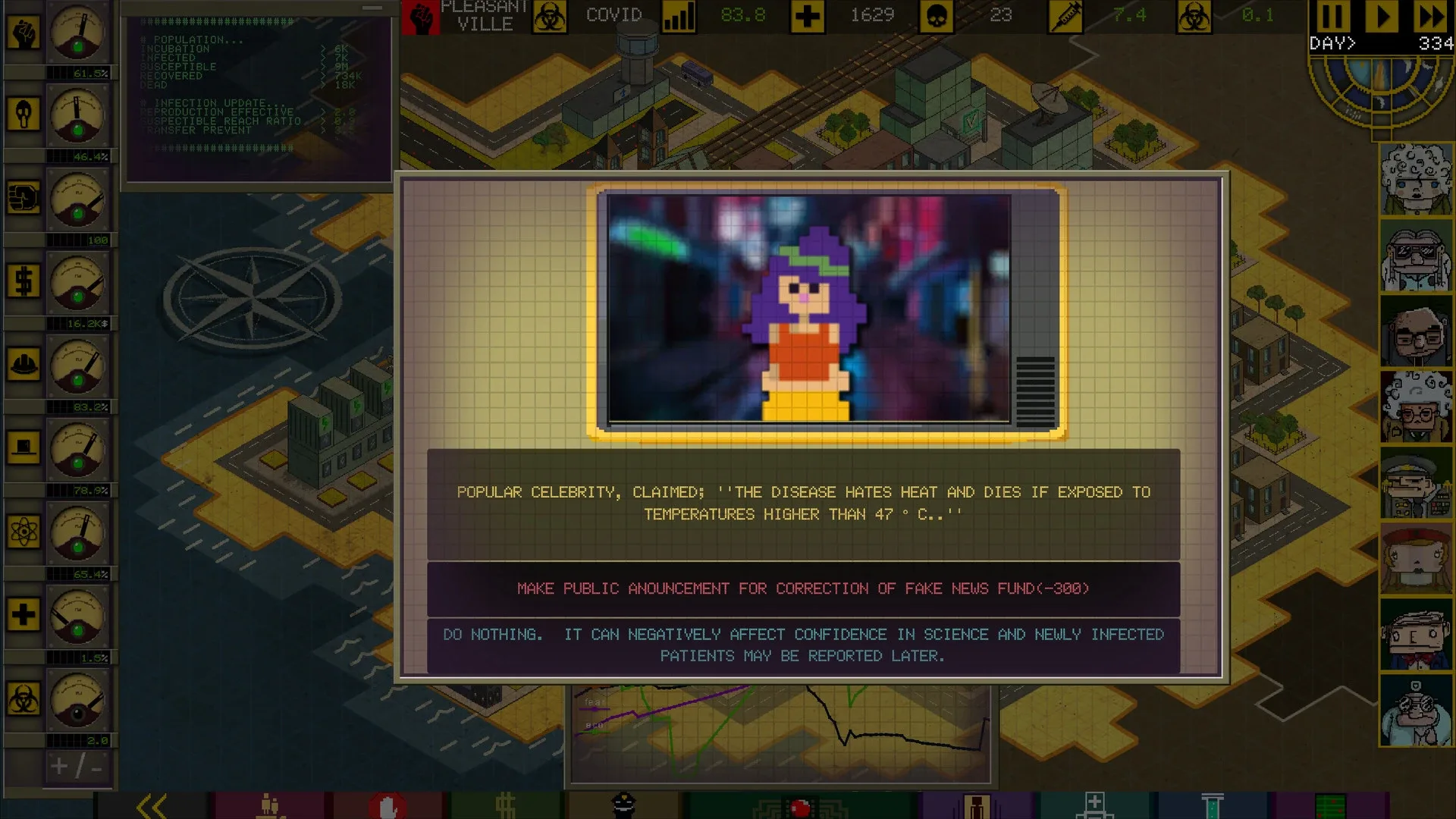 Ministry of Pandemic is a strategy and simulation game that forces social and economic balance during the pandemic. Formulate your strategy for survival while keeping all aspects of society steady.