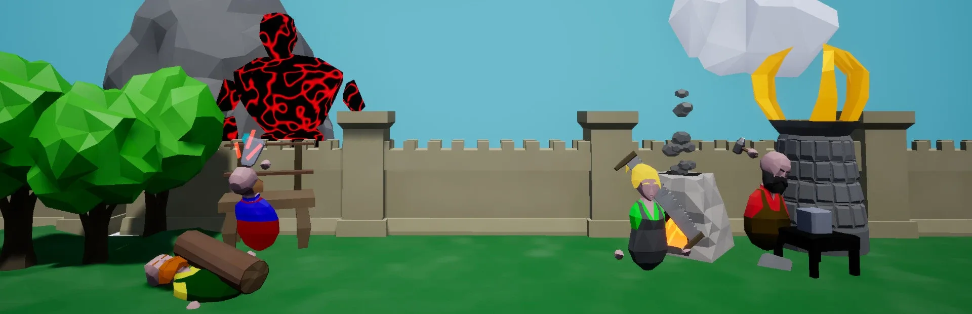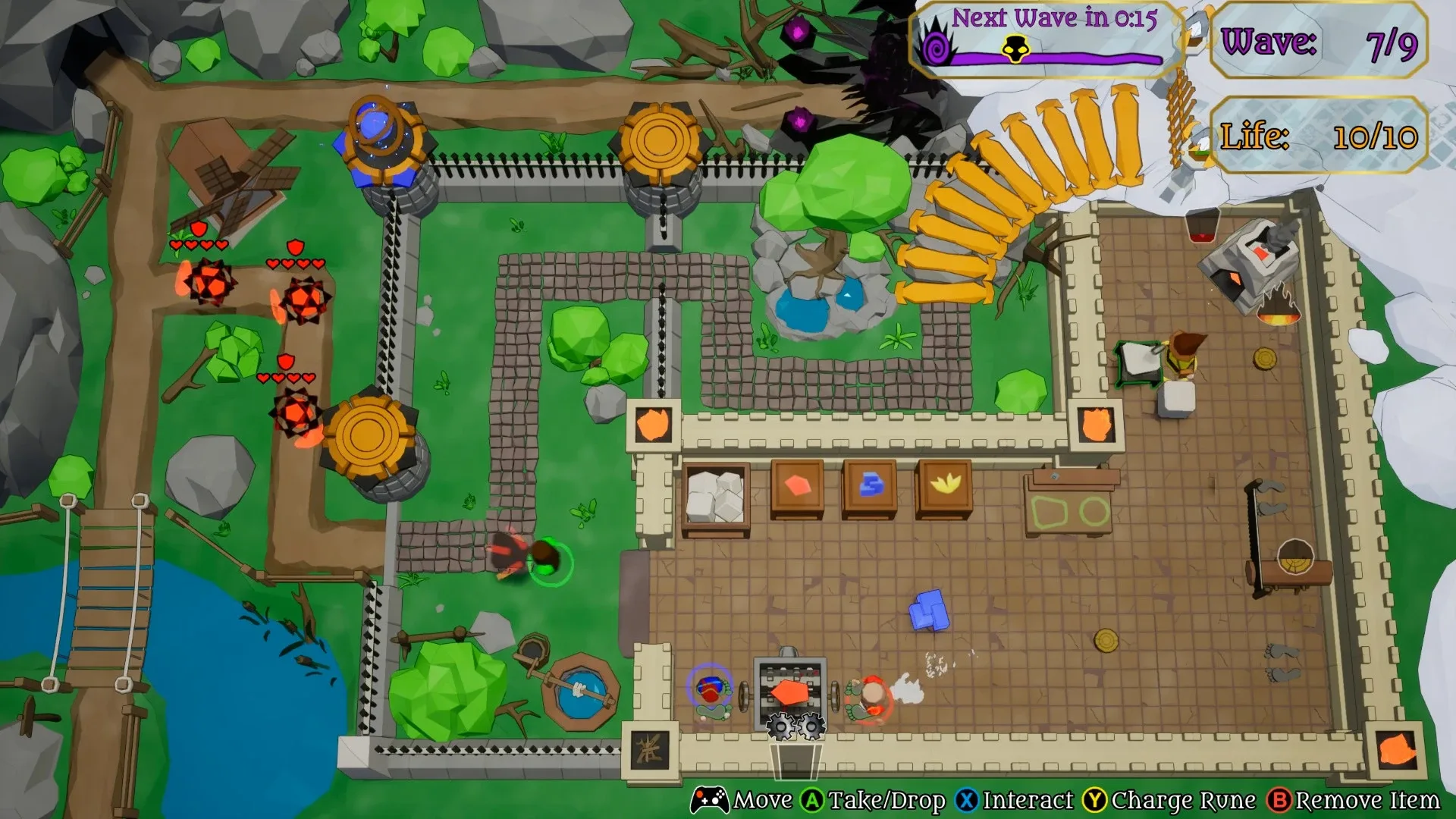 Forge Squad is a cooperative crafting game for up to 4 players. In order to defeat the approaching waves of enemies, runes must be forged. The crafting consists of several steps, which can only be efficiently done together. Enemies can only be injured by towers charged with the right type of runes.