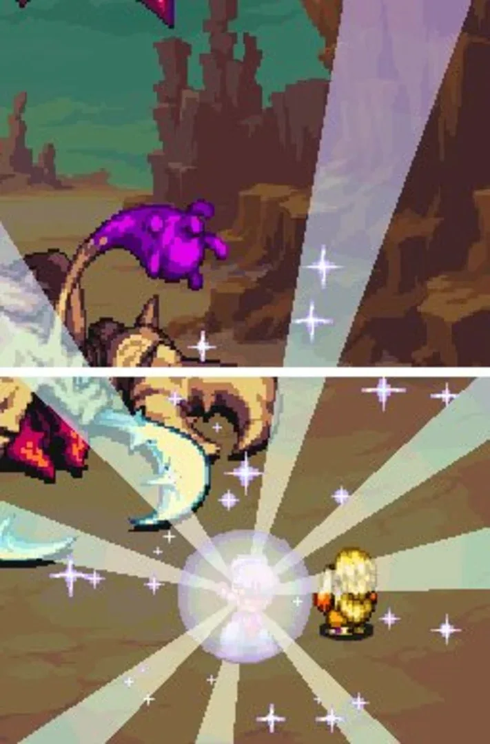 The students of Will O'Wisp magical academy have a little problem: Their teacher has mysteriously disappeared. After commandeering a handful of rockets to rescue her, they've wound up on a strange (and sometimes scary) adventure through outer space. Now players must rescue both their classmates AND their teacher - and just maybe the whole solar system while they're at it. Explore strange planets. Players see the sights of this strange, sci-fi fantasy setting as they uncover the secret behind their teacher's disappearance in this epic role-playing game. The stylus controls everything, from combat to conversations to outfitting allies. Simple controls make it easy to play but a challenge to master. Players can link up wirelessly with five friends and explore the amigo dungeon together - they'll find unending challenges and incredible rewards as they delve into the depths of this unique multiplayer experience.