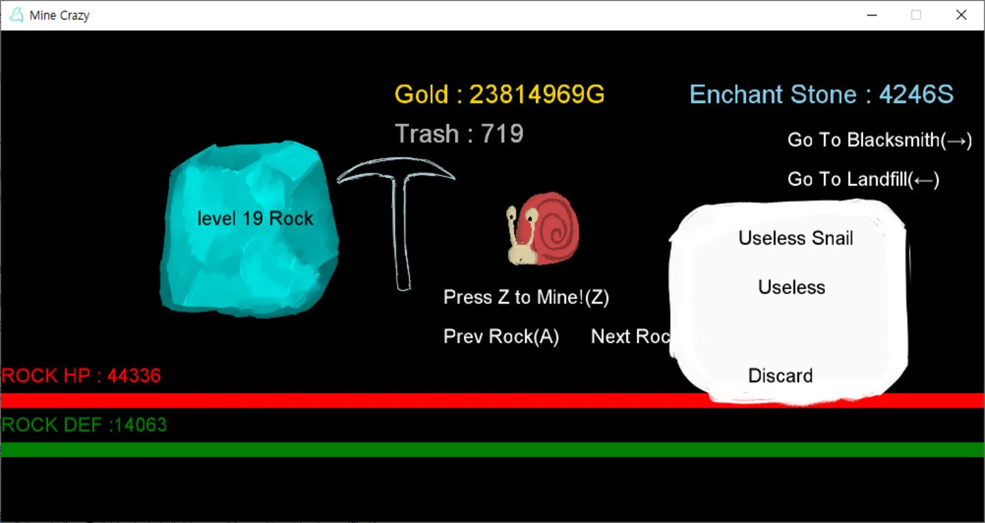 This is the essence of Korean grinder MMO. In game, you'll mine rocks, earn money, and reinforce your pickaxe with that money.