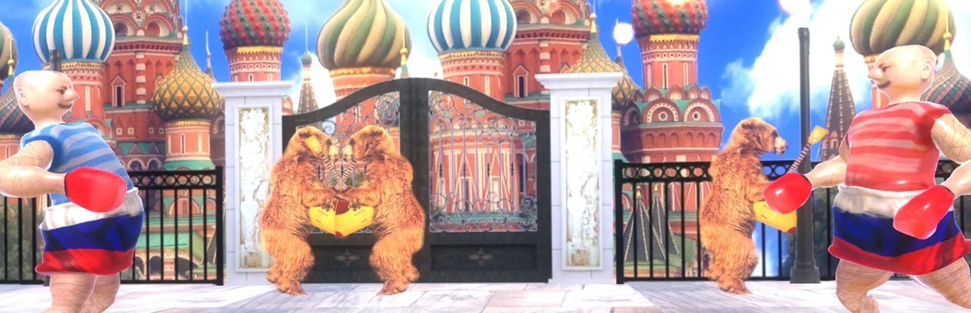 You are waiting for the fights of drunk Russian boxers. Russian people love to fight in front of bears with balalaika!