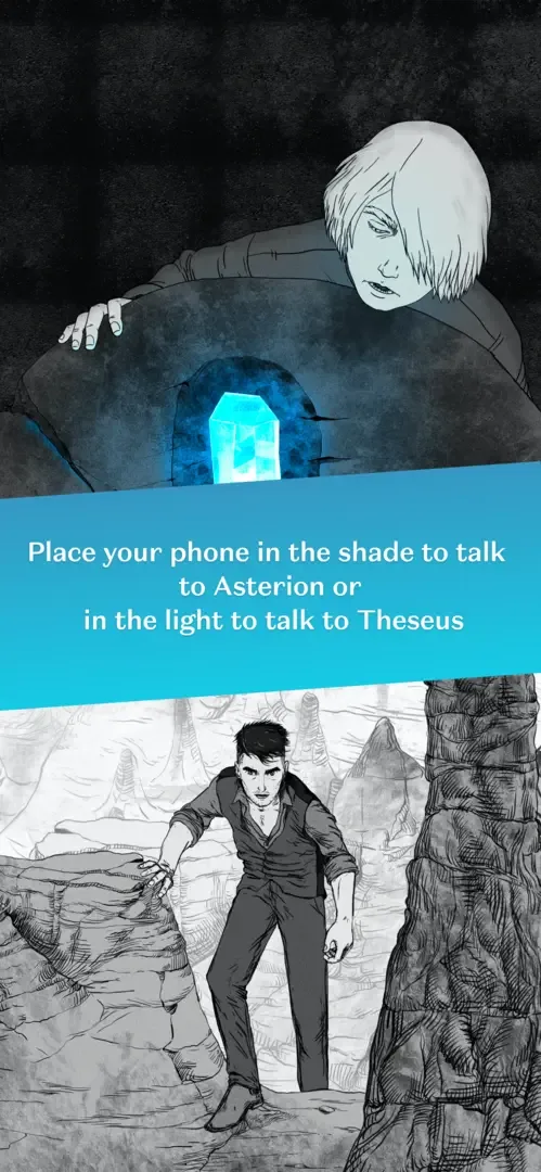 Two young boys are lost in a maze and it's up to you to save them. Guide Asterion and Theseus out of the maze in this visual novel inspired by Greek mythology. Place your phone in the light to talk to Theseus, or in the shade to talk to Asterion. But be careful - the more you help one of them, the more the other gets lost. Help them make the right decisions as you face up to lots of different dangers, discover the secrets of the maze and perhaps manage to set them free. Their fate now rests in your hands. Will your cunning, wisdom, perseverance and skill be enough to help you make the right choices?