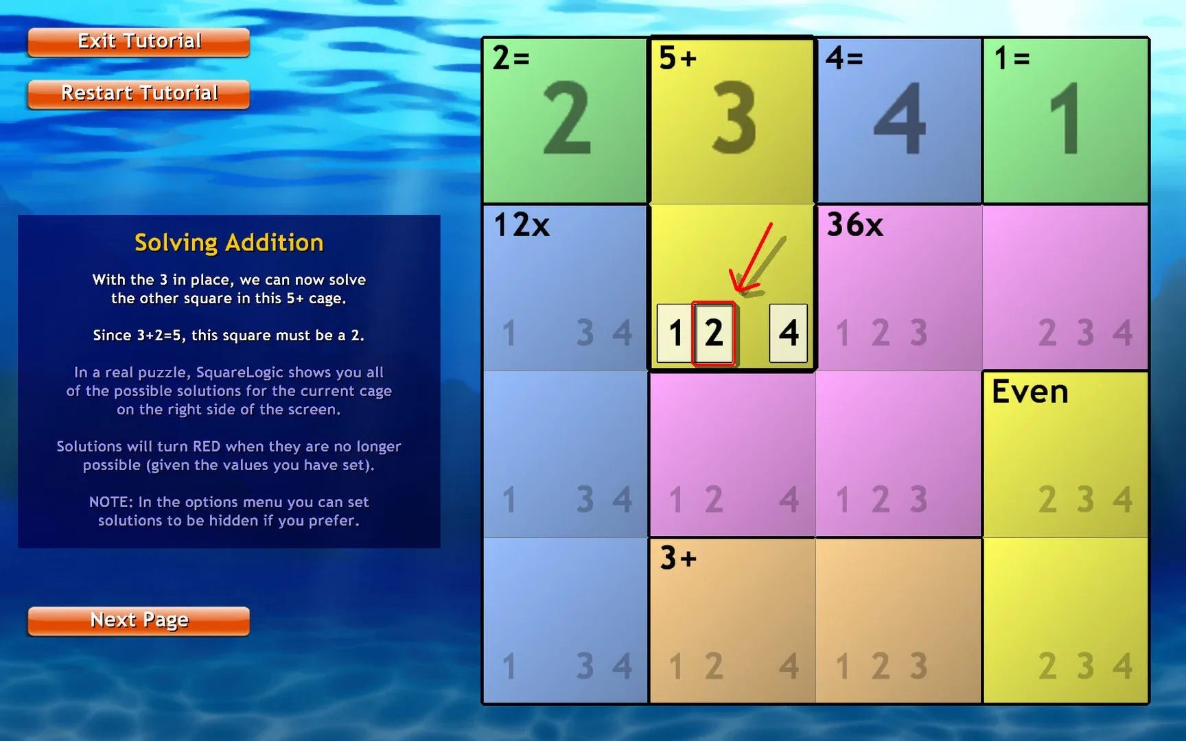 Everyday Genius: SquareLogic can calculate and display possible solutions automatically—allowing you to spend more time playing and less time tediously jotting down possibilities. With puzzles ranging from first-grade easy to astrophysicist hard, you’ll progress along the path to enlightenment as you build your problem-solving brain power with Everyday Genius: SquareLogic.