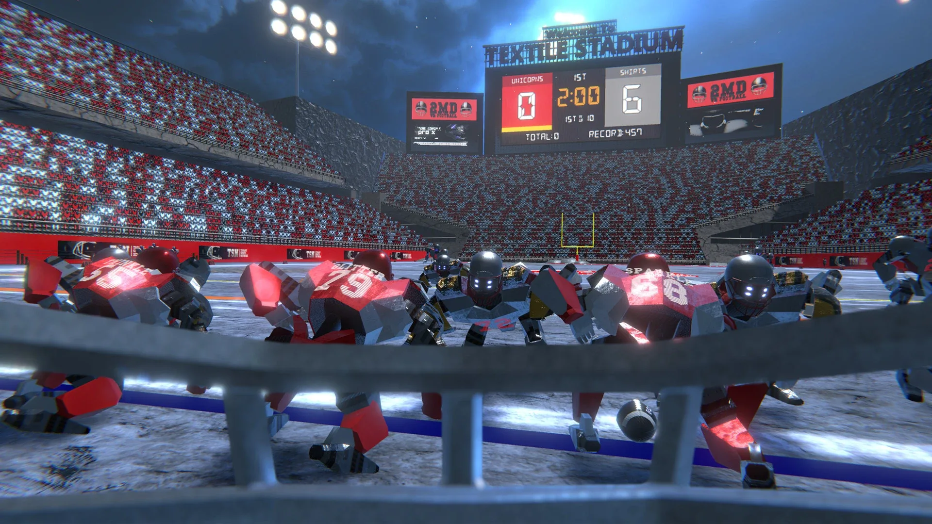 2MD VR Football Evolution is a room-scale two-minute drill VR arcade experience where players take on the role of soulless automaton tasked with capturing victory in the final minutes of a game. Draw the plays, call the shots, and throw the ball to take down opponents before the clock runs out. Or Else.