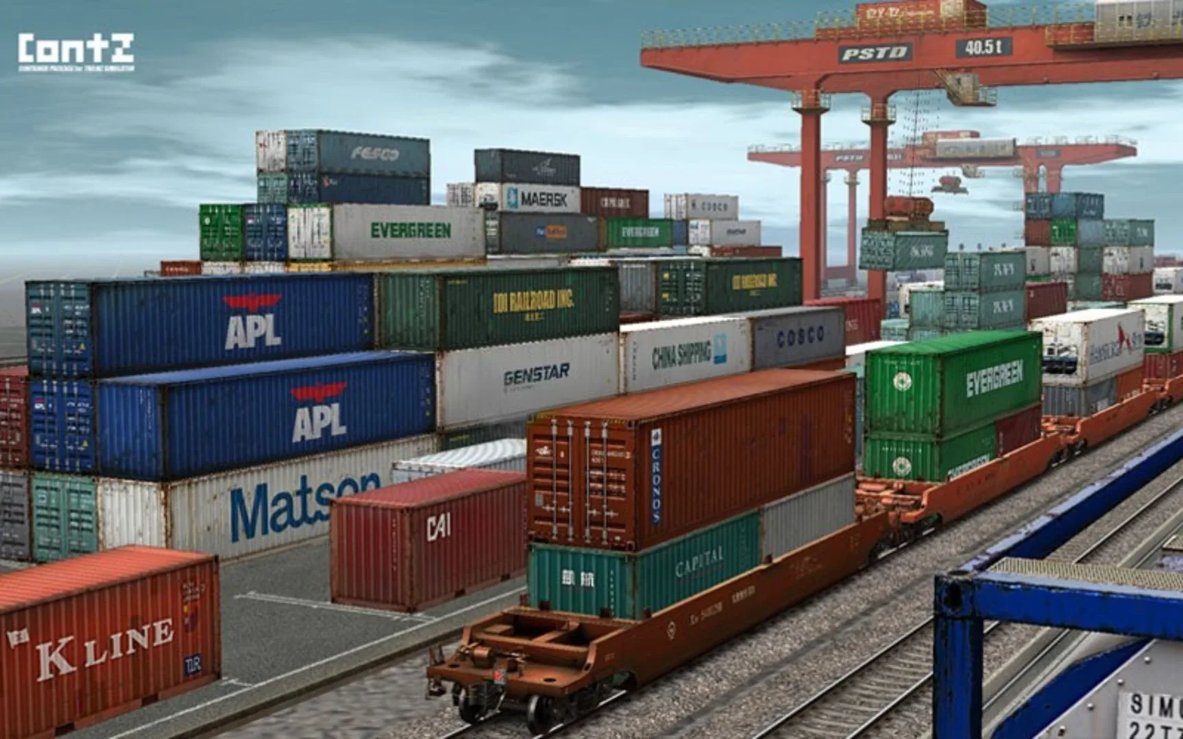 The CONTZ Pack - Standard Edition includes: 20/40ft Containers, Container Yard and X2K Double-Stack Wagons.