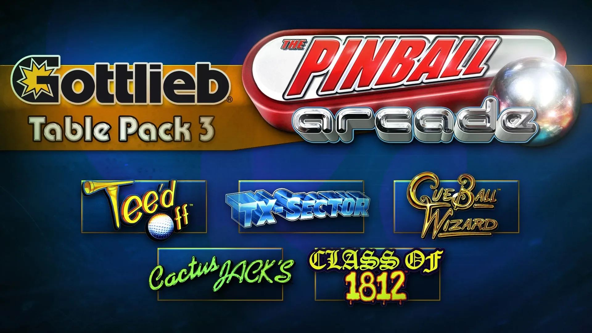 Gottlieb Pack 3 (5 tables) This Pack contains the following tables: Teed Off (DMD) Cue Ball Wizard (DMD) Class of 1812 Cactus Jacks TX-Sector