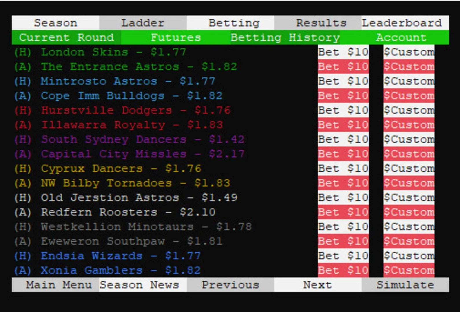 SYDE Rugby League Simulator is a simulator that runs entirely inside the windows command console. Simulate customizable Rugby League seasons with randomly generated teams & players.
